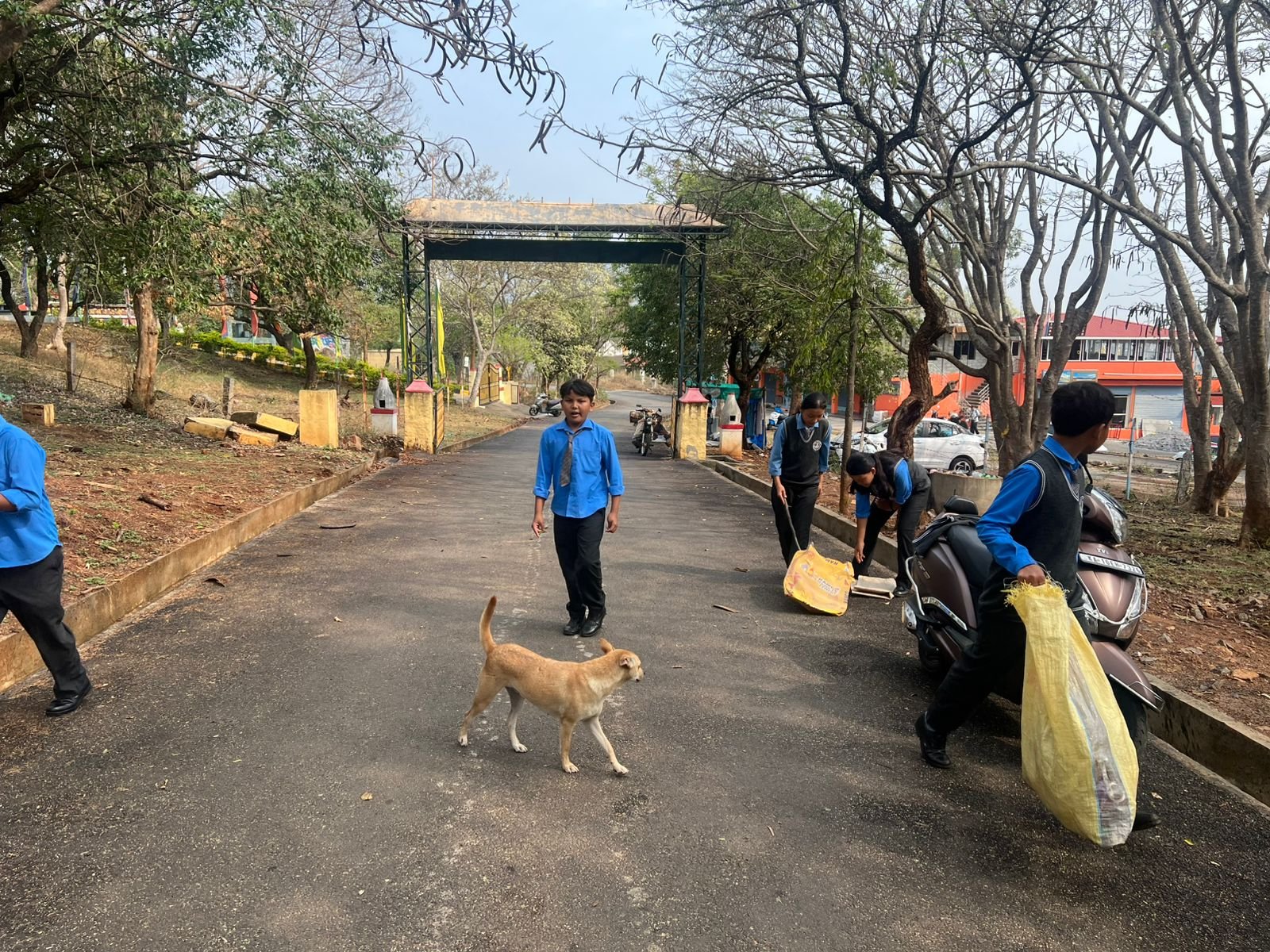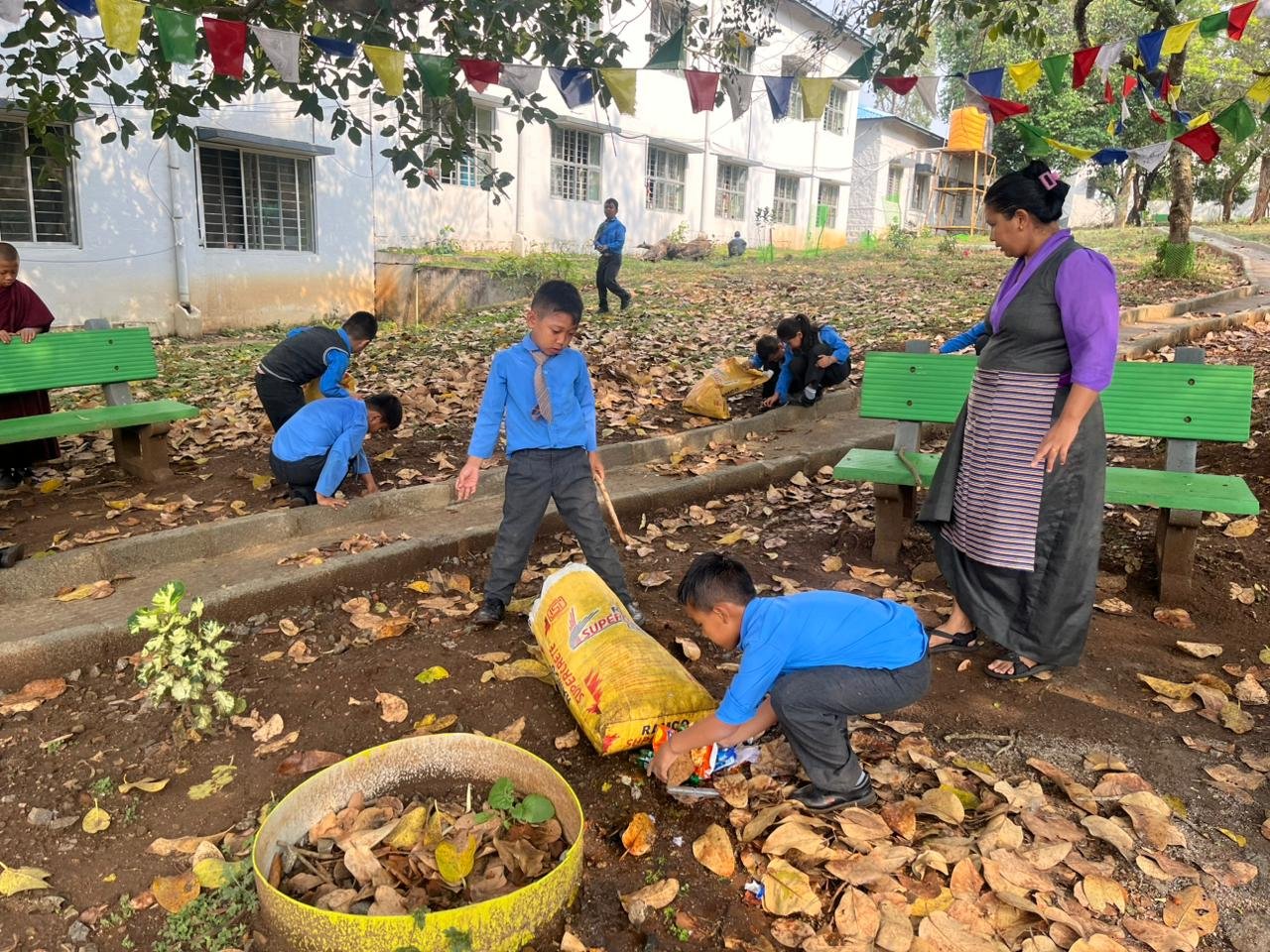 སློབ་གྲྭའི་སྐུའི་གོ་སྟོན་ཚོགས་ཆུང་གིས་གོ་སྒྲིག་འོག་འདི་སློབ་ཀྱི་དགེ་ལས་སློབ་ཕྲུག་རྣམས་ནས་སློབ་གྲྭ་དང་དེའི་ཉེ་འཁོར་དུ་ཡོད་པའི་འགྲོ་ལམ་ཁག དམིགས་བསལ་གྱི་༸རྒྱལ་བའི་ཕོ་བྲང་གི་ཉེ་འགྲམ་ལ་སོགས་ཁོར་ཡུག་གཙང་བཟོ་བྱས།